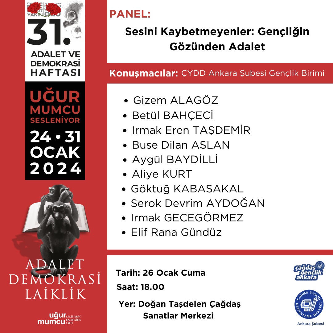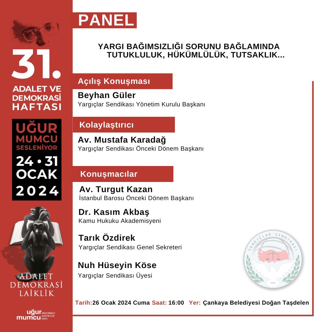 31. Adalet ve Demokrasi Haftası 26 Ocak 2024 Programı