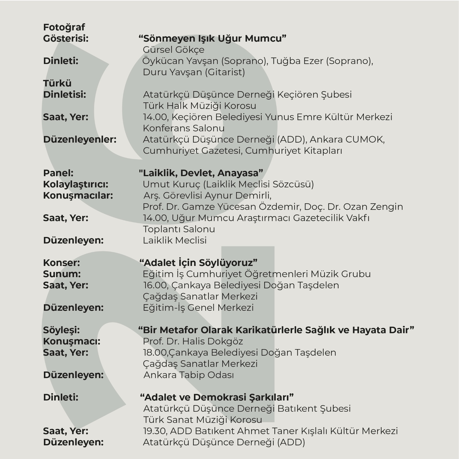 32. Adalet ve Demokrasi Haftası 26 Ocak Programı