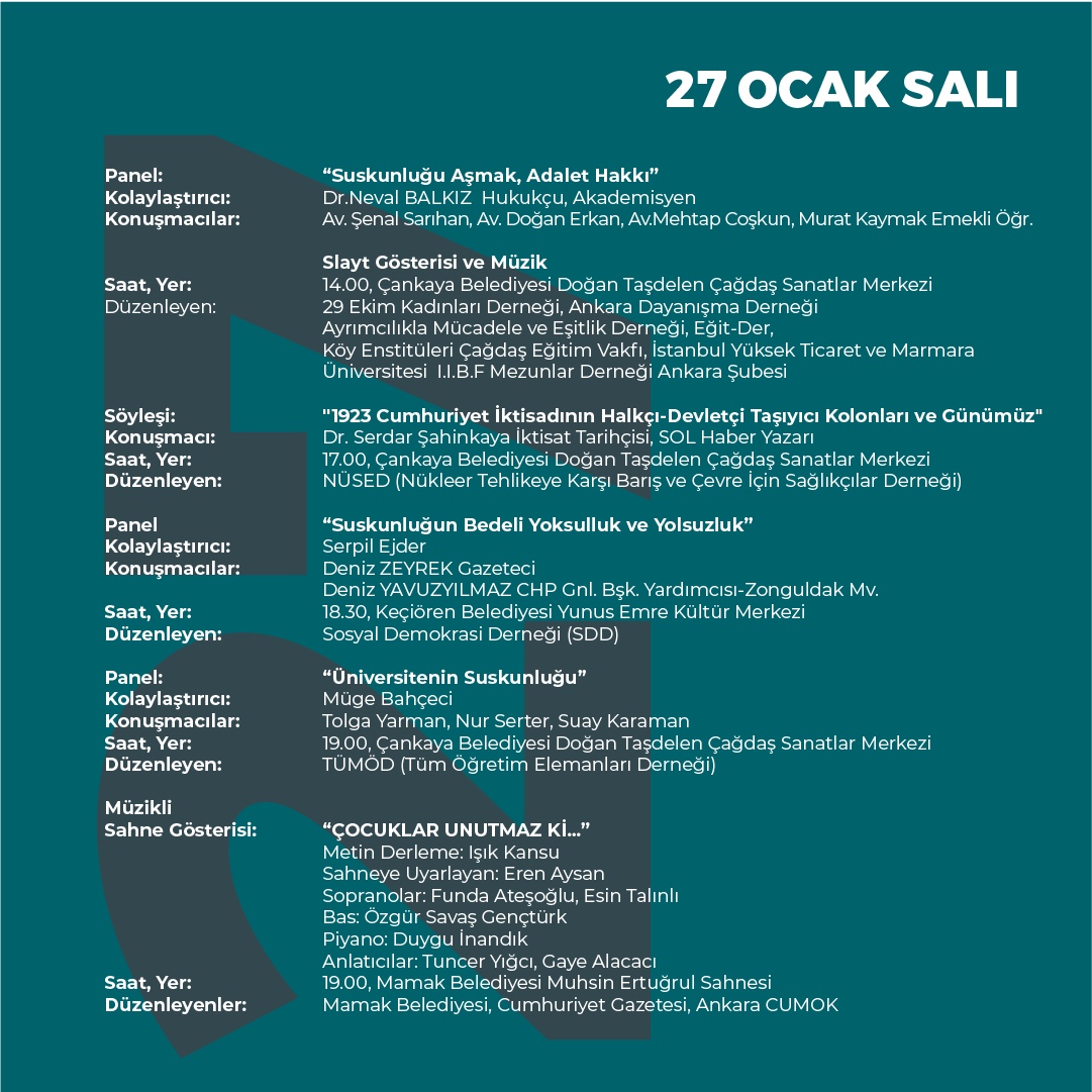 33. Adalet ve Demokrasi Haftası 27 Ocak Programı